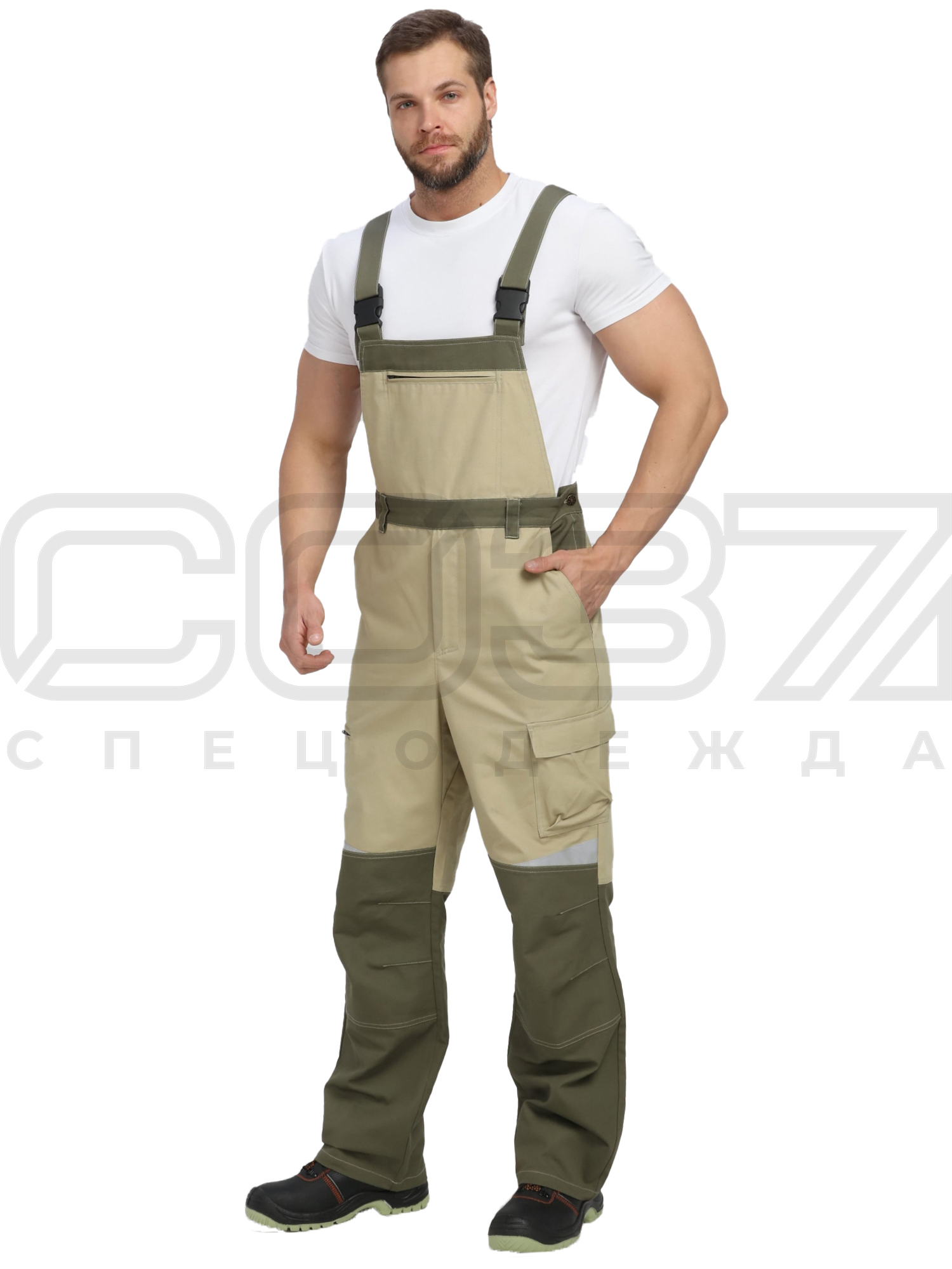Полукомбинезон рабочий "Фулема" цв.хаки/бежевый тк.канвас в Санкт-Петербурге