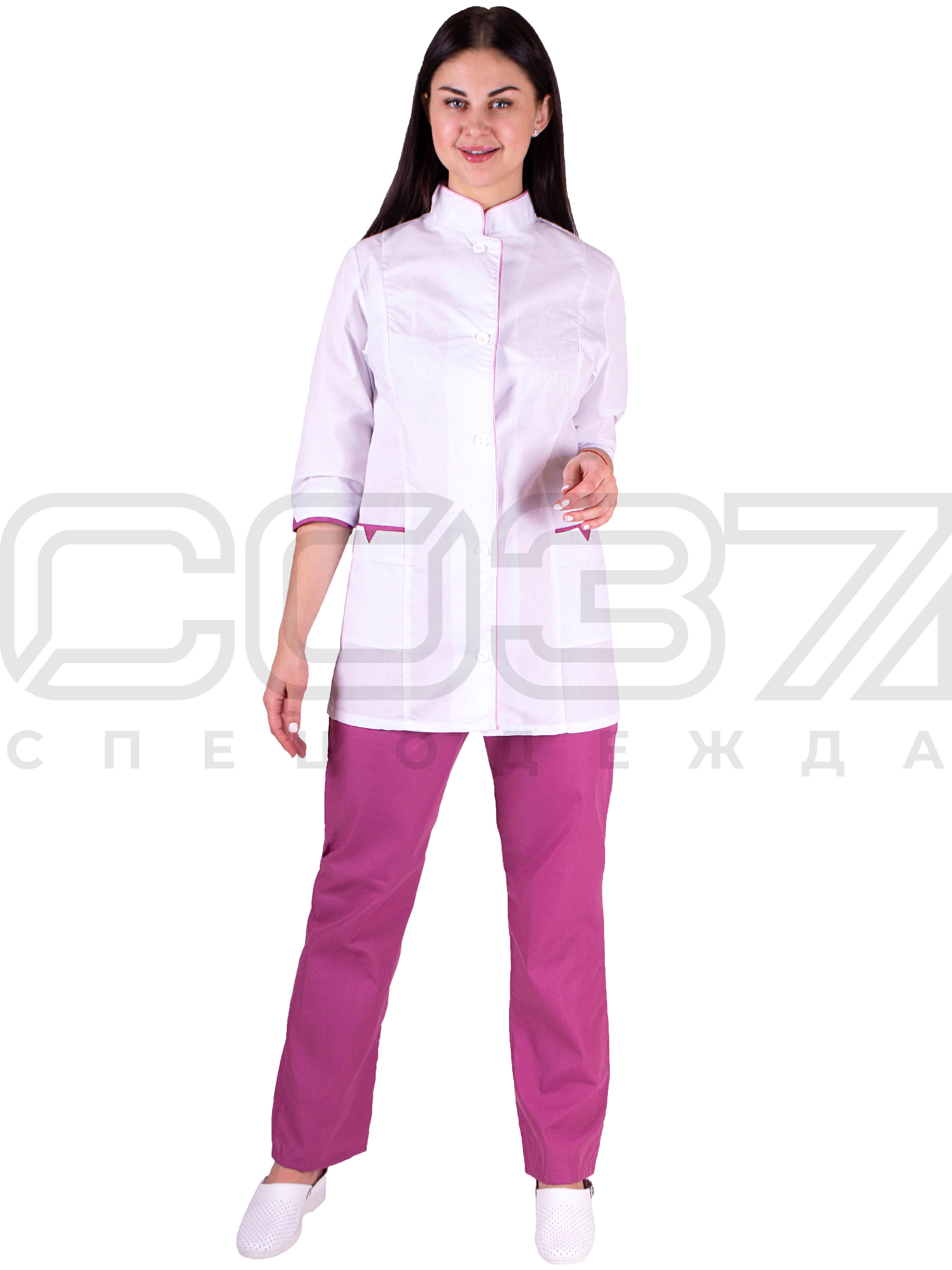 Костюм повара женский "Chef" цв.белый/сирень тк.тиси в Санкт-Петербурге