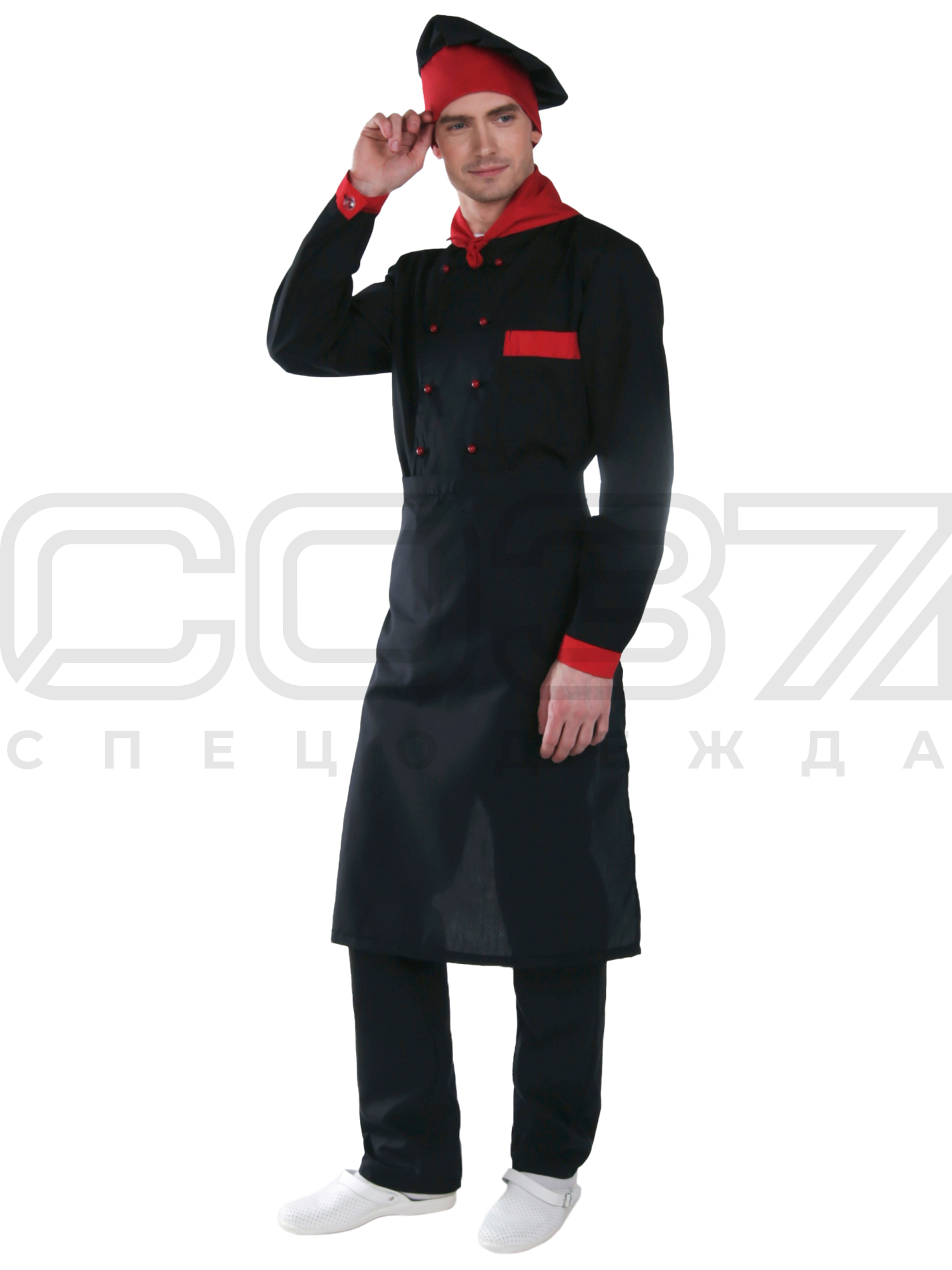 Костюм повара мужской "Марципан" цв.чёрный/красный тк.тиси в Санкт-Петербурге