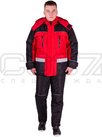 Куртка рабочая зимняя "Импульс" с СОП цв.красный/чёрный тк.оксфорд в Санкт-Петербурге