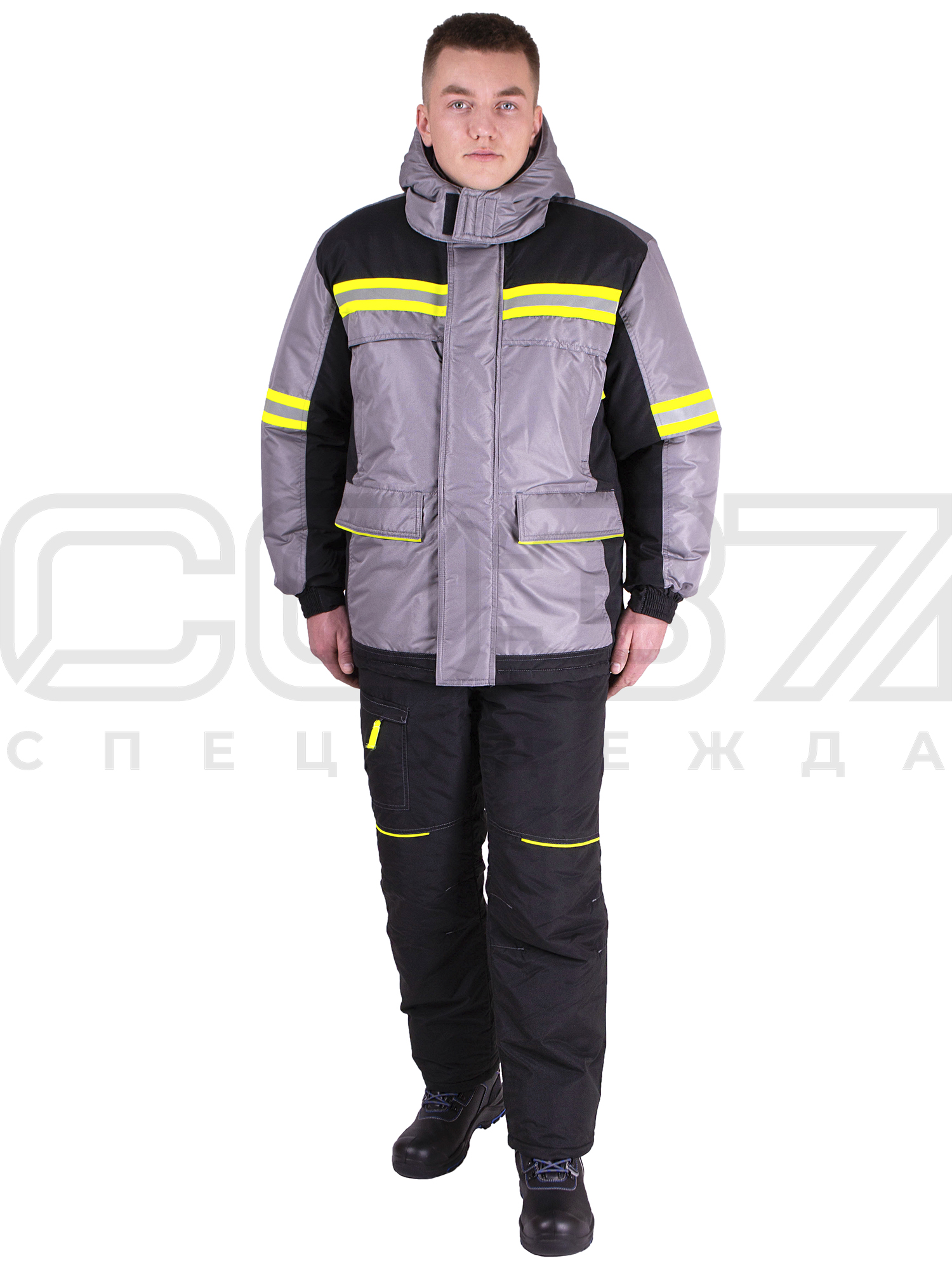 Куртка рабочая зимняя "Проект" с СОП цв.т.серый/чёрный тк.таслан в Санкт-Петербурге