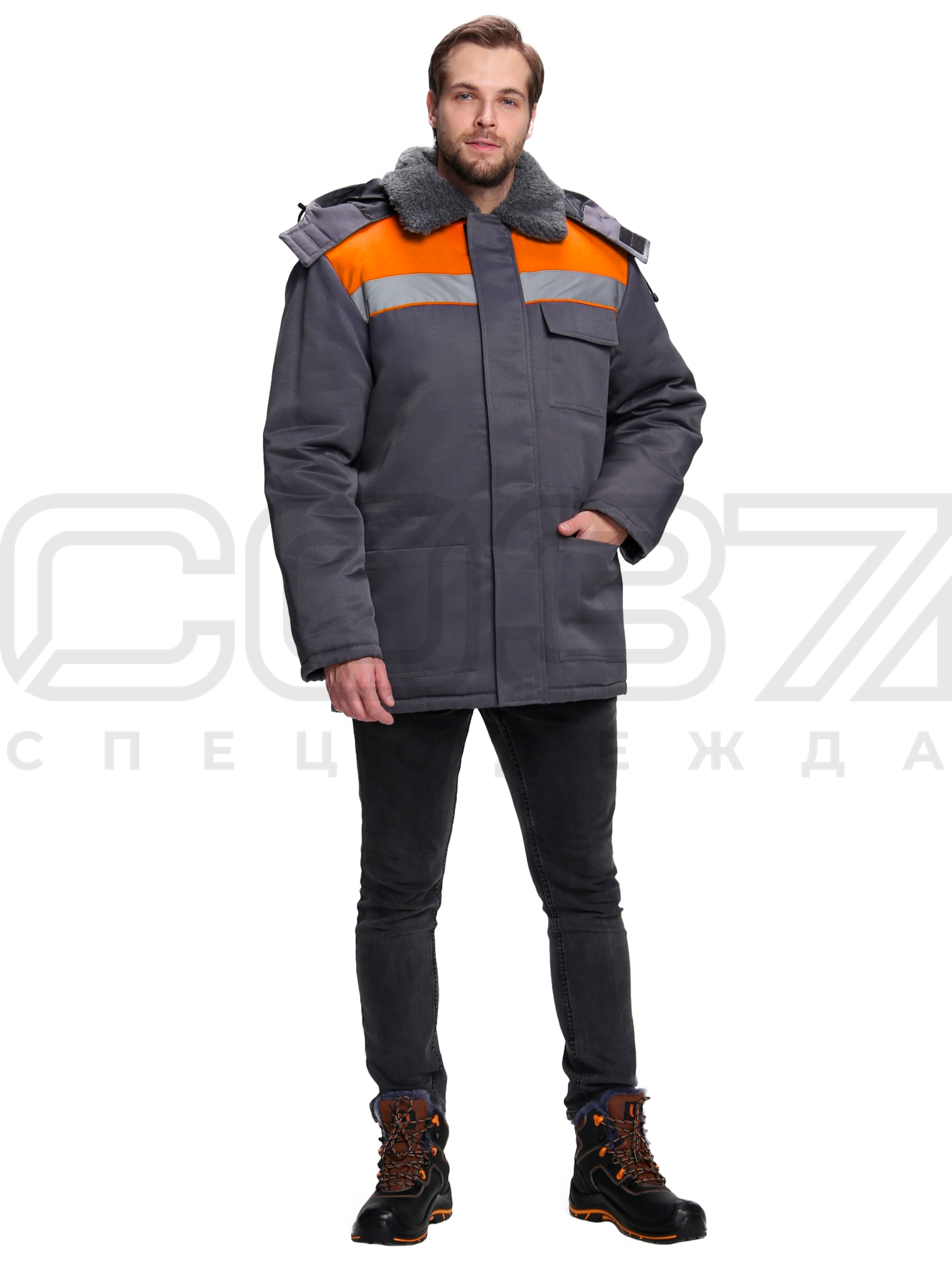 Куртка рабочая зимняя "Маховик N" с СОП цв.т.серый/оранж тк.грета в Санкт-Петербурге